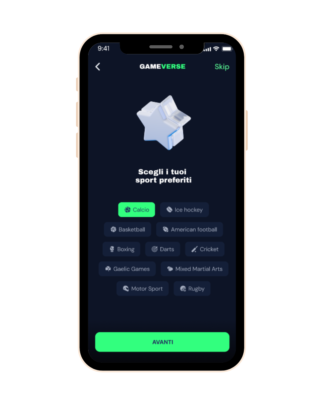 No, GAMEVERSE non è un’App di scommesse. Avrai la possibilità di scoprire informazioni, predizioni e consigli sugli eventi sportivi di tuo interesse, ma avrai accesso alle migliori quote live di tutti i principali bookmaker a portata di mano. Se vorrai procedere, verrai indirizzato direttamente sulle loro piattaforme.